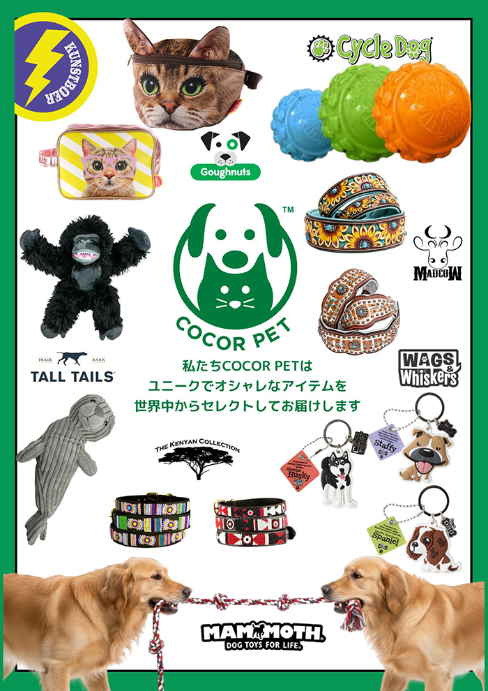 海外のペットグッズをセレクトしてお届けするネットショップ。手作りの首輪、耐久性にこだわったカラフルなおもちゃ、ぬいぐるみ、かわいいキーホルダーなど珍しい商品をお届けします。