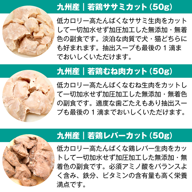 九州産若鶏をレトルト加工で仕上げたジューシーなペットフードと